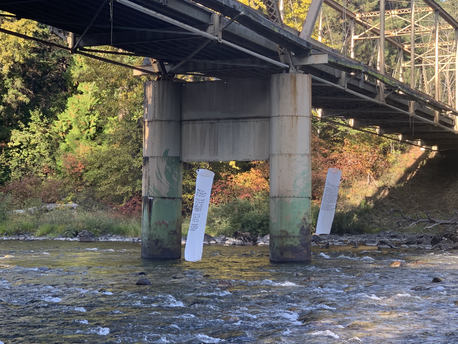 The installation, Displaced, conceived during an artist residency at the Grünewald Guild investigates the incongruousness and insulation of communication. Two poems written distinctively in modern English and in modern Chinese are transformed into Runes and pictographs, and sewed on two scrims. The way that Runes from the early Middle Ages and pictographs from ancient China appear in an American town confounds times and spaces. They are alien and loud. The black-and-white color and the shape of scrim and ring are understated and concise. The translucent fabric interacts with nature (water, light, wind, etc.) around it.